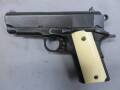 ハリウッド・ガンアクション映画の金字塔のひとつとして数えられる マイケル・マン監督の代表作「ヒート(1995)」。作は当時あぶらの乗り切っていたアル・パチーノとロバート・デ・ニーロと言うハリウッド2大スター初の本格共演作としても注目を集めました。パチーノが使用したモデルはミリタリーテイストを前面に押し出したMkⅣシリーズ80のバリエーションとしてコルト社からリリースされた「M1991A1」のコンパクトモデル。これはガバメントシリーズのフレームを切り詰めて軽量小型化したキャリーガンの元祖として80年代半ばに登場したオフィサーズACPのコスメティックチェンジモデルとも言えるプロダクツで、WAでは各部オフィサーズシリーズ専用のパーツを導入し、この『コルトM1991A1コンパクト』をリアルにモデルアップしております。この『ヒート・カスタム』には、リアルスチール・フィニッシュを採用。そして今回は映画「ヒート」仕様を語る上で絶対にはずせない、アイボリータイプのグリップパネルを新たに製作して標準装備