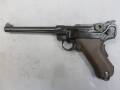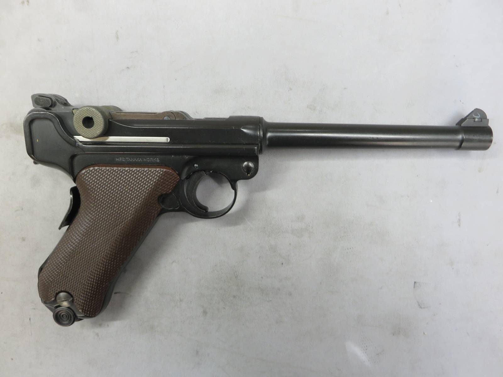 中古 エアガン・モデルガン 販売・買取 専門店 D-StageGunNet ルガー タナカ 第二次世界大戦 モデル エアガンガスガン 【タナカ】ルガーP06・M1906 6in 価格: ¥40,000 (税込 ¥44,000) 販売期間: 数量: 挺 在庫: 1挺 在庫 1挺 品番 : 011-00049 区分 : 中古 種類 : ガス・ブローバック 箱 : あり 説 : あり 付属品 : 写真に写っているものですべて 作動 : 正常・試射確認済み。 所見 : 写真が現物です。銃本体には、目立つ傷など特に見受けられない。グリップを変更してあります。 全長 275mm 重量 545g 装弾数 12+1発 1P08が制式採用される以前(1906年)マリーネP06/ルガーP1906はドイツ海軍に採用されていた