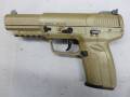 中古 エアガン・モデルガン 販売・買取 専門店 D-StageGunNet FNハースタルFN5-7 マルシン CO2 ガスガン エアガンガスガン 【マルシン】Five-seveN 6mmBB CO2 オールFDE アルミピストン Ver.2 価格: ¥22,000 (税込 ¥24,200) 販売期間: 数量: 挺 在庫: 1挺 在庫 1挺 品番 : 019-00090 区分 : 中古 種類 : CO2 ガス・ブローバック 箱 : あり 説 : あり 付属品 : 写真に写っているものですべて 作動 : 正常・試射確認済み 所見 : 写真が現物です。銃本体には、目立つ傷など特に見受けられない。 全長 210mm 重量 780g 装弾数 22+1発 待望の新パワーソースCO2を採用。従来のフロンガスの弱点であった寒い気温でも安定作動。超高衝撃ポリマー採用。システムは一部パーツに超々ジュラルミン強化パーツを採用して耐久性がUPしたVer.2構成。スピード重視のアルミピストン仕様。