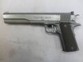 記念すべき第1作目である「ターミネーター(1984)」。映画の冒頭で2029年から1984年にタイムスリップして来たT800が、ロサンゼルスの銃砲店でウージーサブマシンガン等と共に入手するハンドガンとして登場したのが「ハードボーラー・ロングスライド」です。本編以外にポスター等のキービジュアルとして大々的に使用されたこのハードボーラーは、主演のシュワルツェネッガーの体躯に見劣りしない特異な外観から、作品を象徴するモデルとして強く印象付けられました。 ハードボーラーはコルト・ガバメントのクローンとして米国AMT社から1977年に発表され、当時は初のオールステンレス製1911ピストルとして注目を集めました。1980年に他に類を見ない7インチスライドを搭載した最大級のバリエーションとして製作されたのがハードボーラー・ロングスライドです。ハードボーラーは、コルト・ゴールドカップをソースにしたターゲットモデルとしてデザインされていることから、スライドトップには反射防止のリブが設けられ、フロントサイトは大型のパートリッジタイプを採用しているのが特徴です。さらに後部には専用パーツとして再現された、上下左右の微調整が可能なマイクロリアサイトを搭載しております。フレーム側にはゴールドカップの意匠を色濃く受け継ぐワイドマッチトリガーを装備。こちらもオリジナルのコルトとは似て非なる専用パーツとして製作されています。そのほかオールドスクール的ワイドスパーのハンマー、エクステンディッド・サムセフティと言ったパーツは、数種類のパーツ構成が確認される実銃のバリエーションの中から、くだんの劇中で使用されたプロップガンの組み合わせを再現したものです。